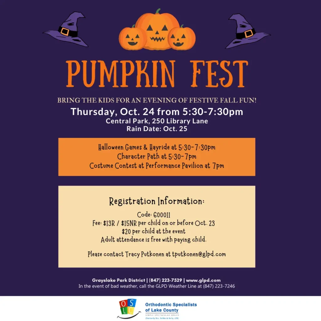 Save the date to bring the kids to Central Park for an evening of Halloween fun! Pumpkin Fest, hosted by the Grayslake Park District features Halloween games, moon walks, hayride, costume contests, a Halloween character path and more!